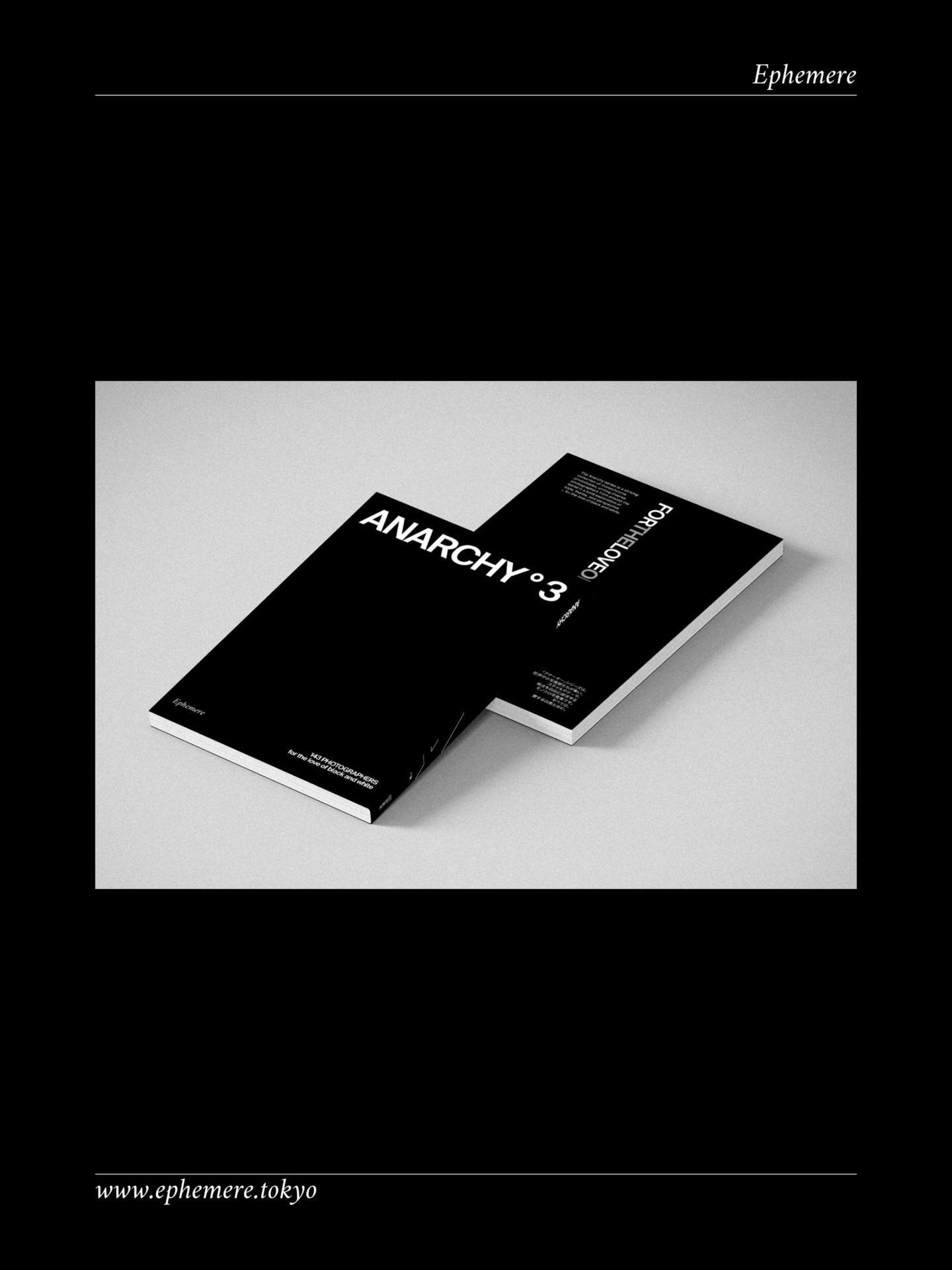 このたび、モノクロ写真集『Anarchyº3』に私の作品も選出され、掲載されました。Ephemere が展開するブラック&ホワイト写真シリーズ三部作の最終巻となる本書には、1,000点以上の応募の中から選ばれた、世界25カ国・143名の写真家が参加しています。多様なモノクロ表現が交差する一冊の中に、自分の作品を加えられたことをとても光栄に思います。世界発送は2026年3月中旬より開始予定です。 詳細はこちらのサイトをご覧ください。